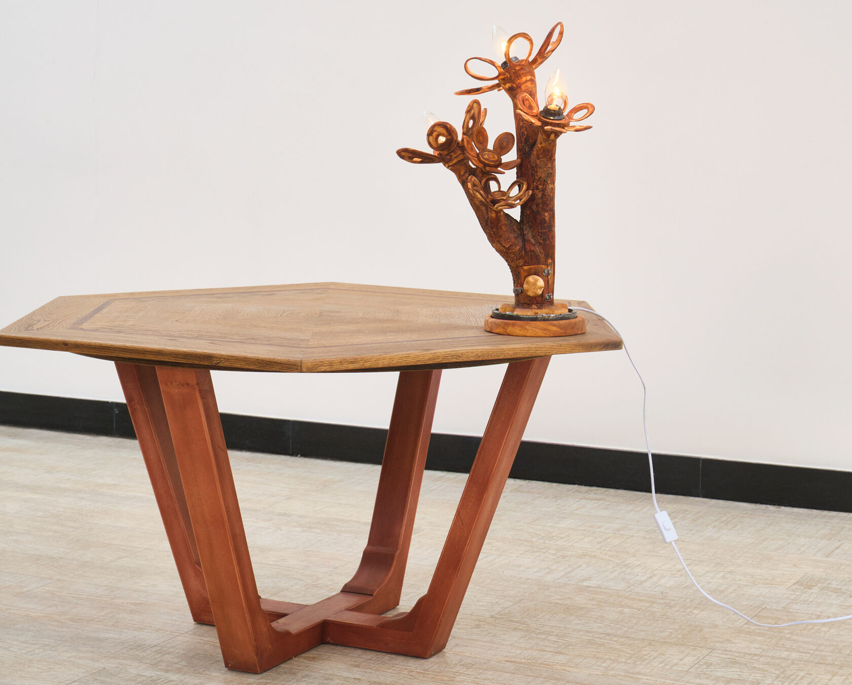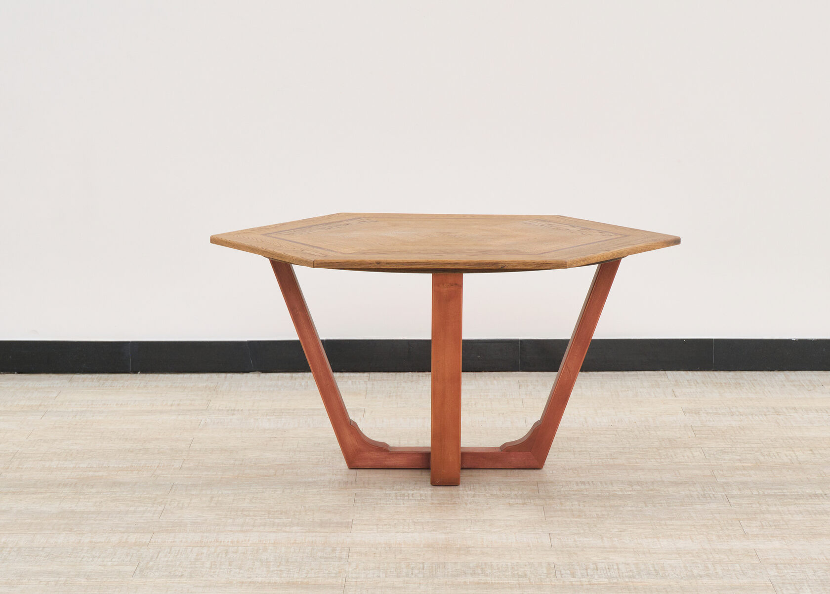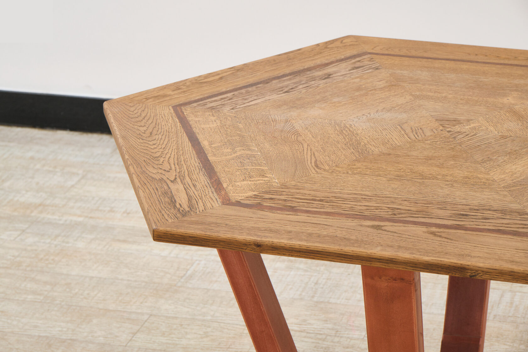 Стол шестиугольный Alliance — это первое изделие серии, где геометрическая форма шестиугольника стала отправной точкой для создания уникального предмета. Изделие демонстрирует возможности сложной столярной работы с инкрустацией и комбинированием различных пород дерева.