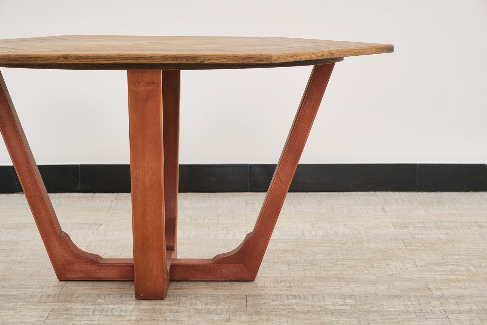 Шестиугольная форма символизирует единство и баланс, создавая равные условия для всех сидящих за столом. Размер 1100×1100 мм оптимален для 6 человек, где каждый получает свою грань стола.