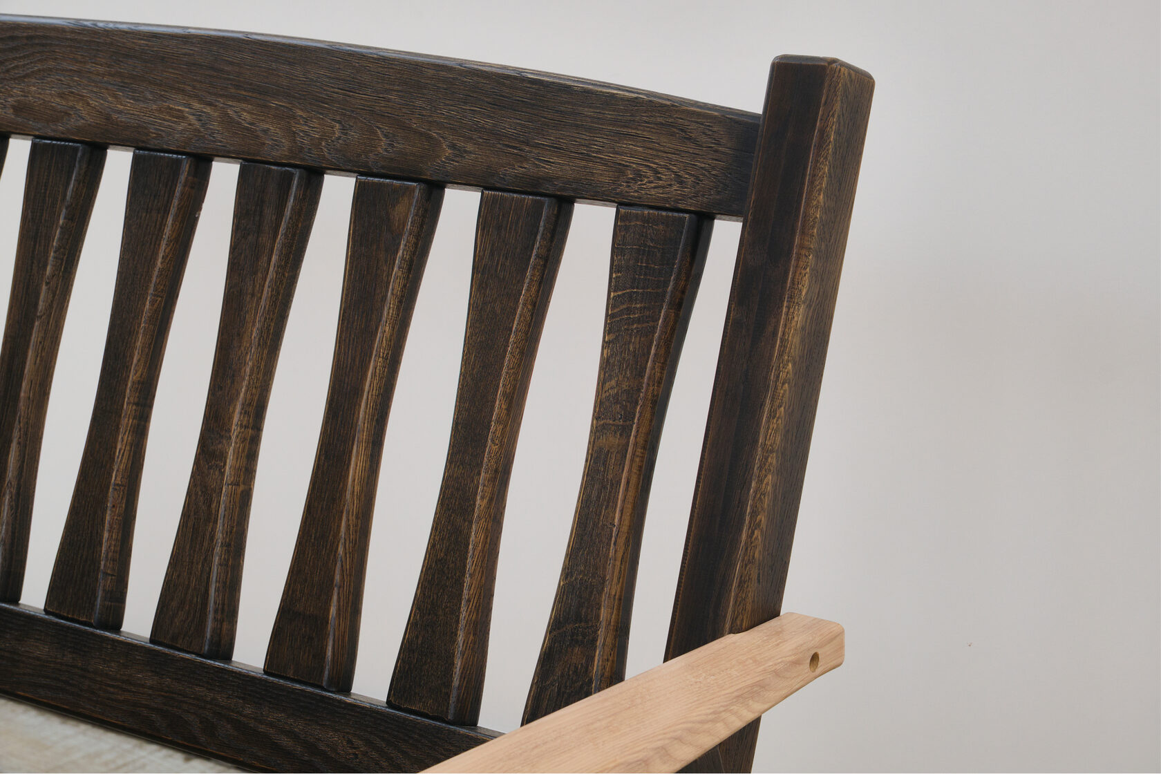 Дуб, покрытый специальным лаком, не боится ни дождя, ни солнца. Он принимает погоду как данность, меняя оттенок в зависимости от освещения. Угловатые формы создают игру света и тени, превращая каждый час дня в новое визуальное переживание.