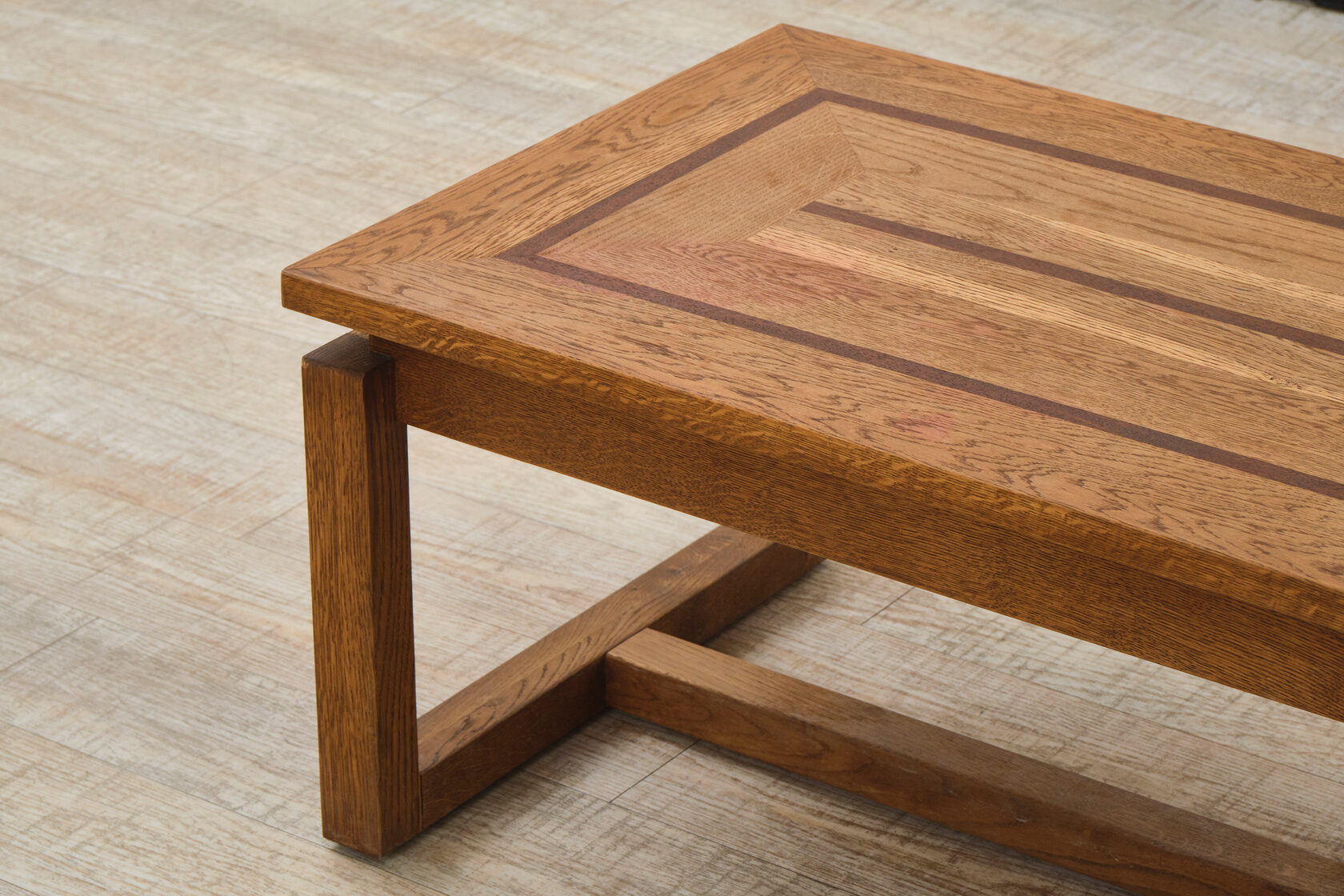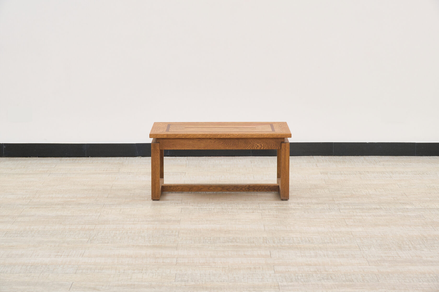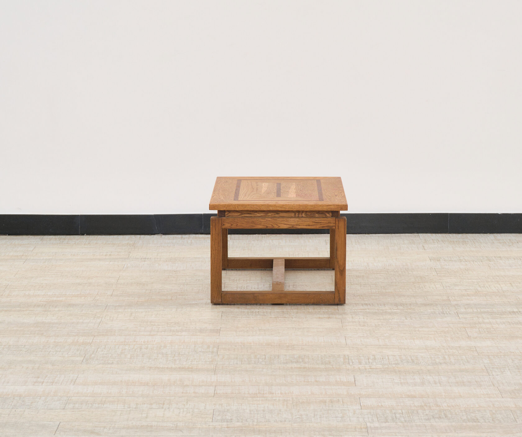 Размер делает стол идеальным спутником для размышлений. Достаточно большой для книги и чашки кофе, достаточно элегантный, чтобы быть центром внимания. Контраст дуба и красного дерева создает визуальную глубину.