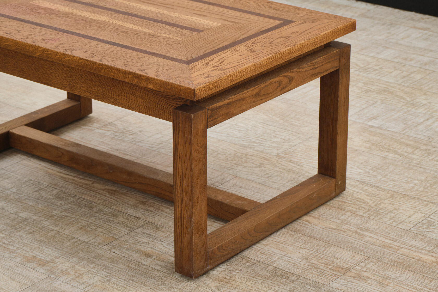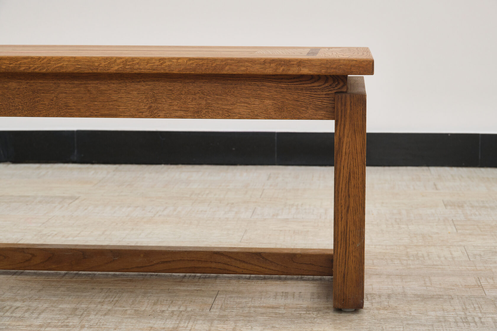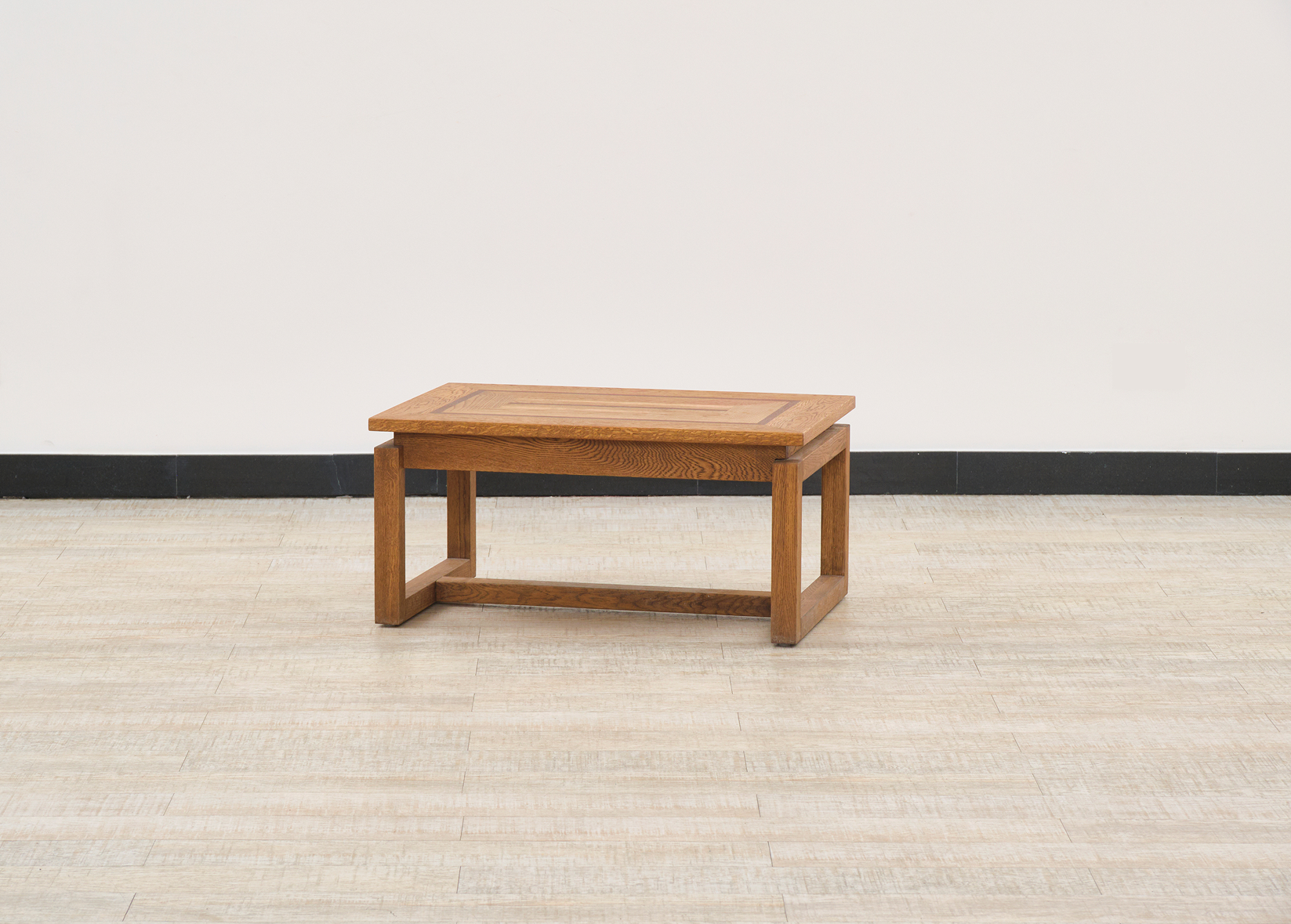 Размер делает стол идеальным спутником для размышлений. Достаточно большой для книги и чашки кофе, достаточно элегантный, чтобы быть центром внимания. Контраст дуба и красного дерева создает визуальную глубину.
