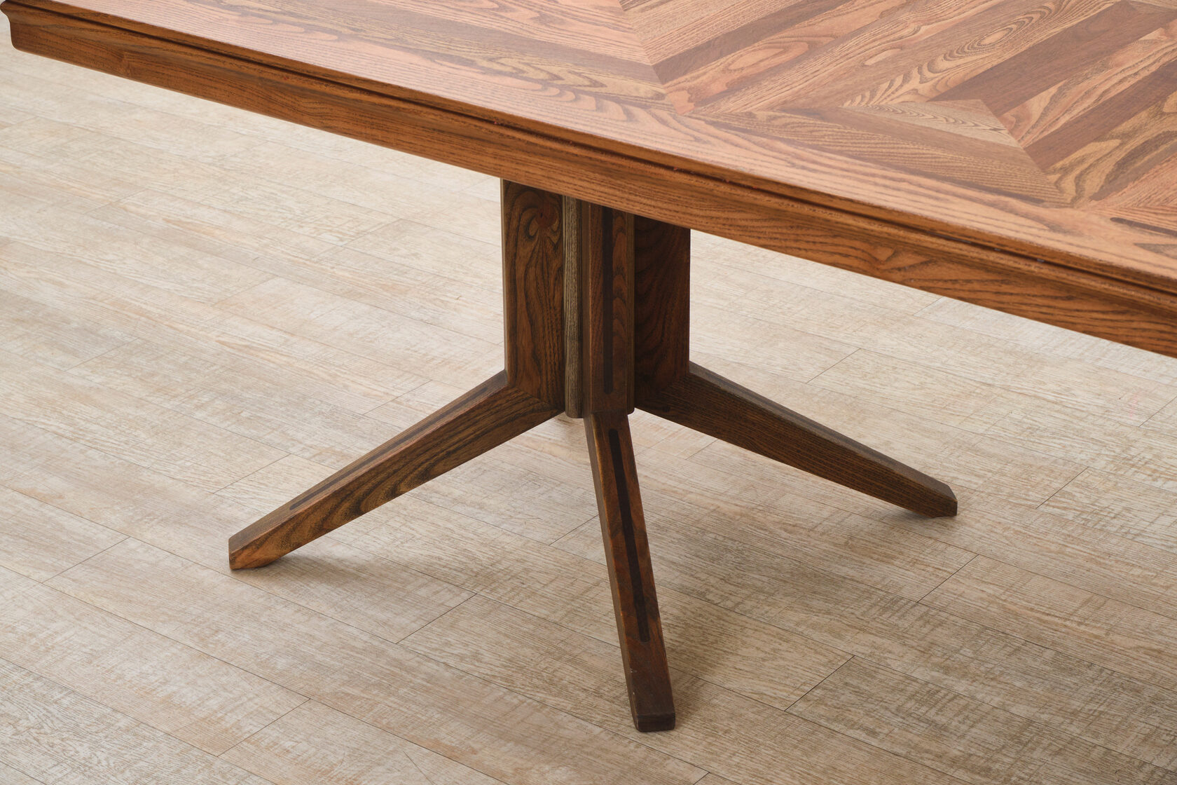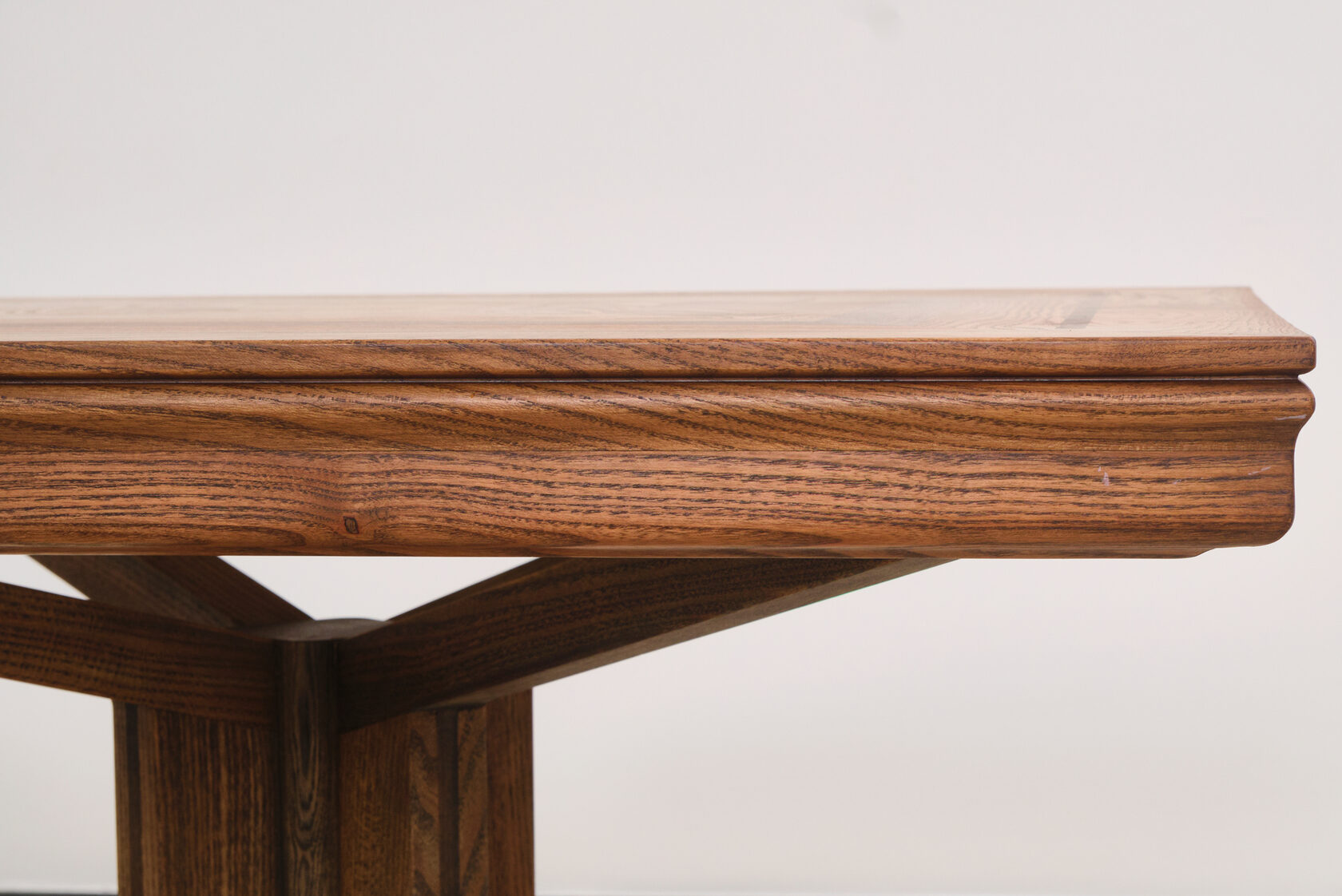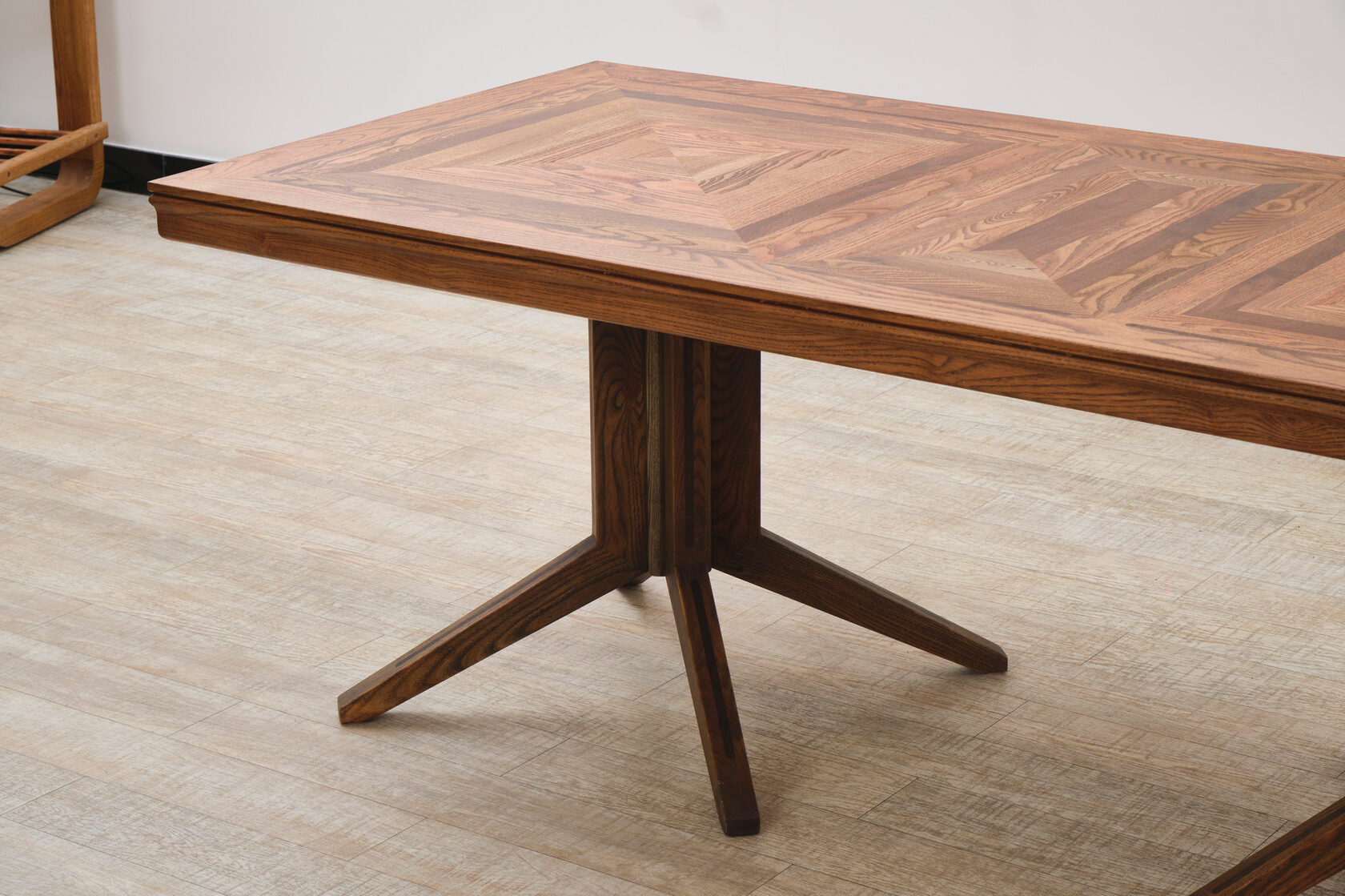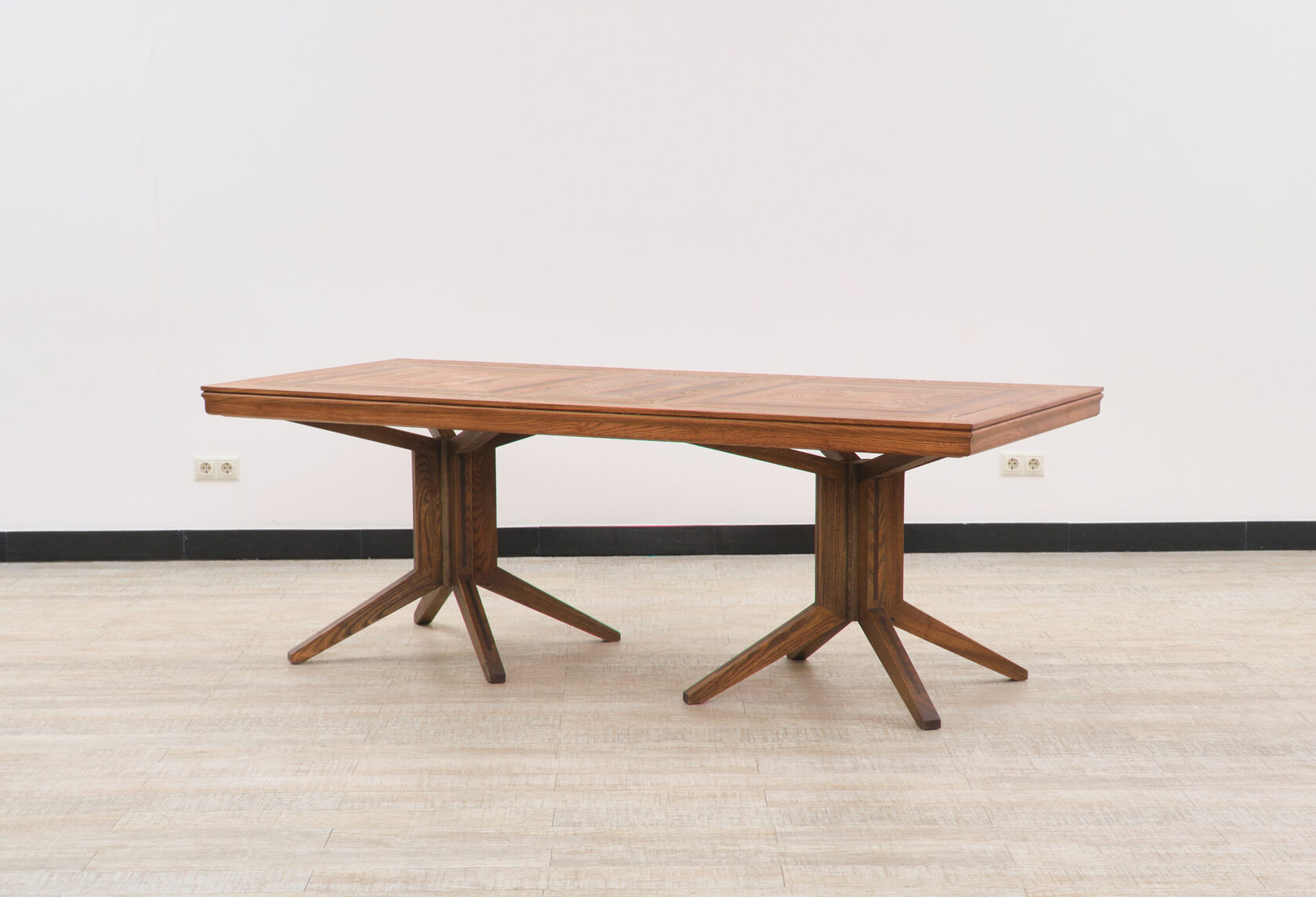 Массивное подстолье из фанеры — это не компромисс, а возможность создать форму, которая невозможна в массиве. Архитектурный подход к мебели, где каждый элемент работает на общую идею.